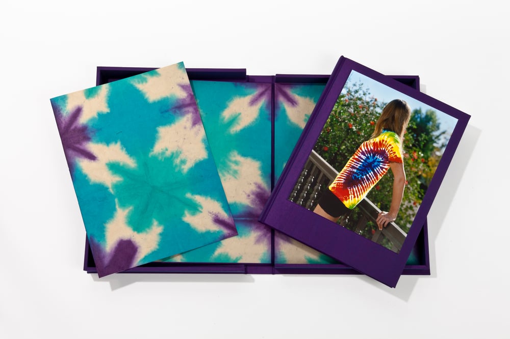 Each edition is handbound in a distinct color and paired with a unique photogram on Fuji instant color film, a hand-sewn folio of texts, and a matching presentation case.