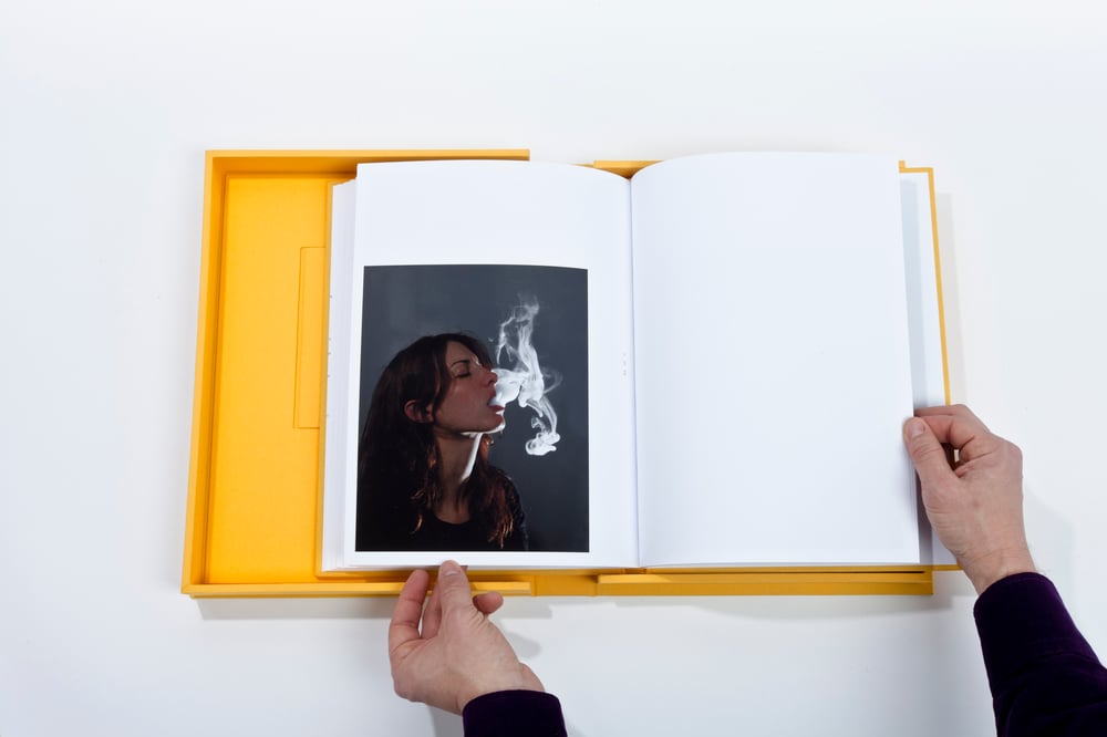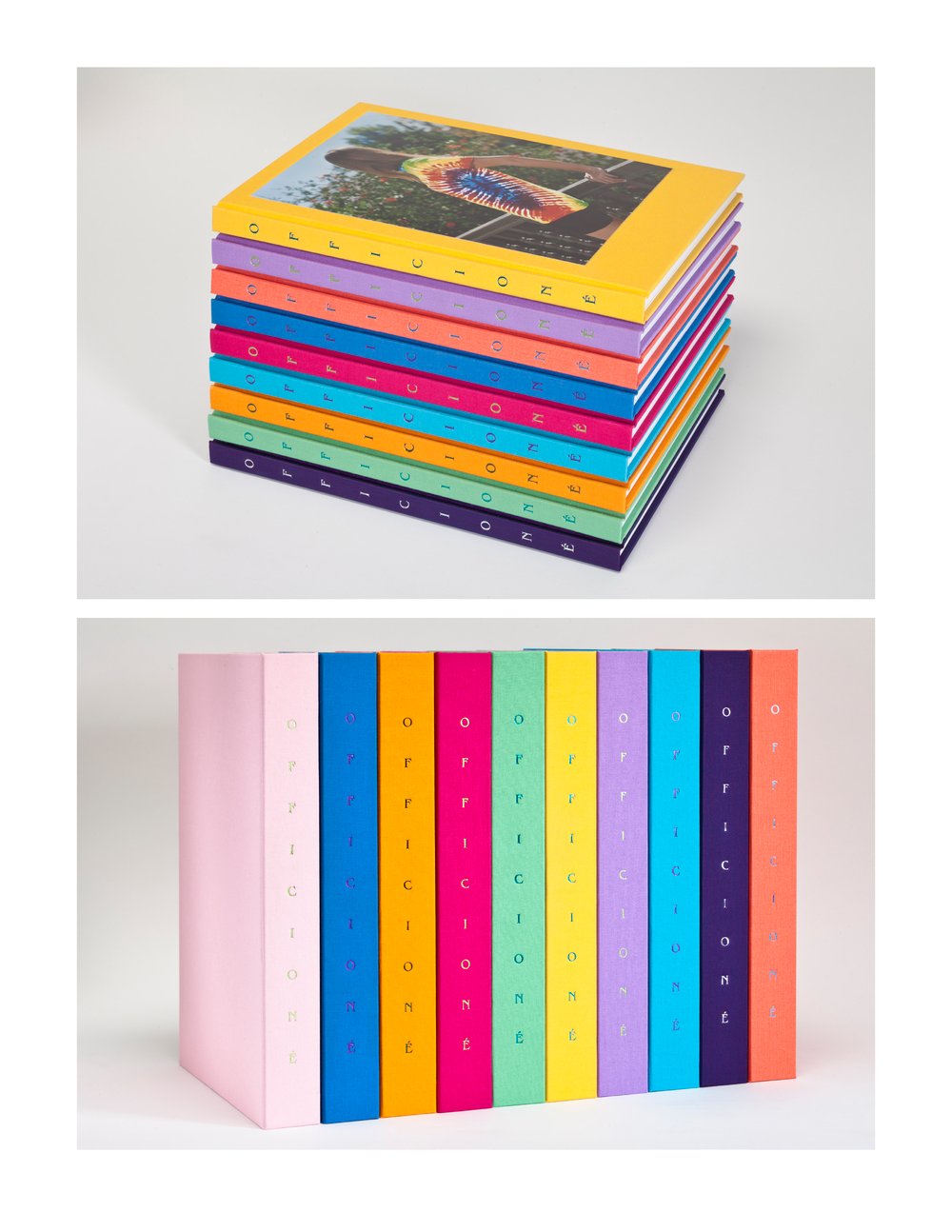 Each edition is handbound in a distinct color and paired with a unique photogram on Fuji instant color film, a hand-sewn folio of texts, and a matching presentation case.